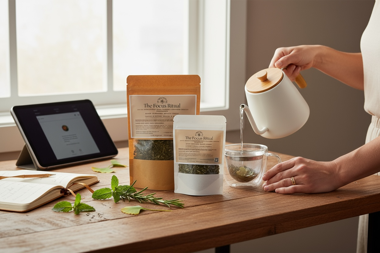 Ignite your clarity and focus with Focus Ritual, a handcrafted nootropic herbal tea designed to enhance mental performance naturally.